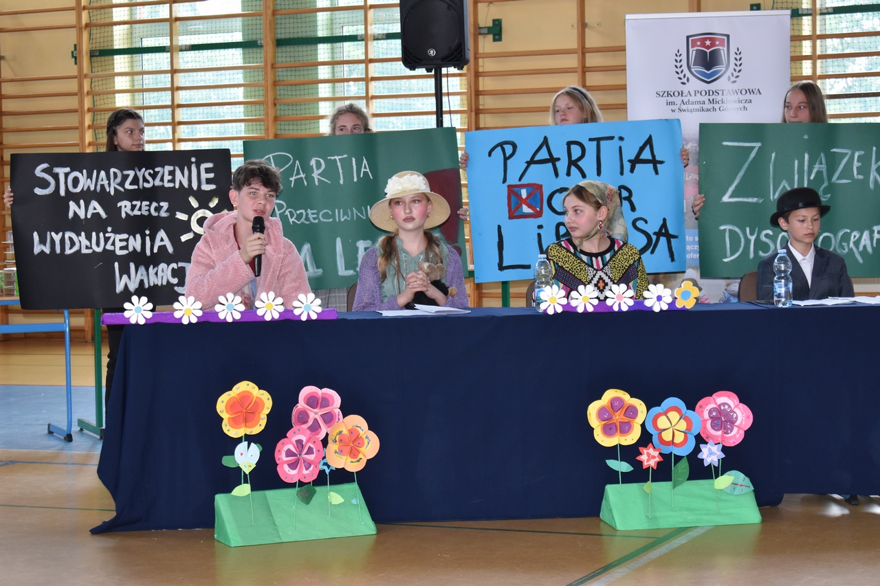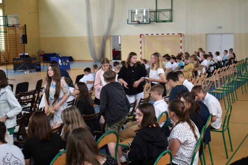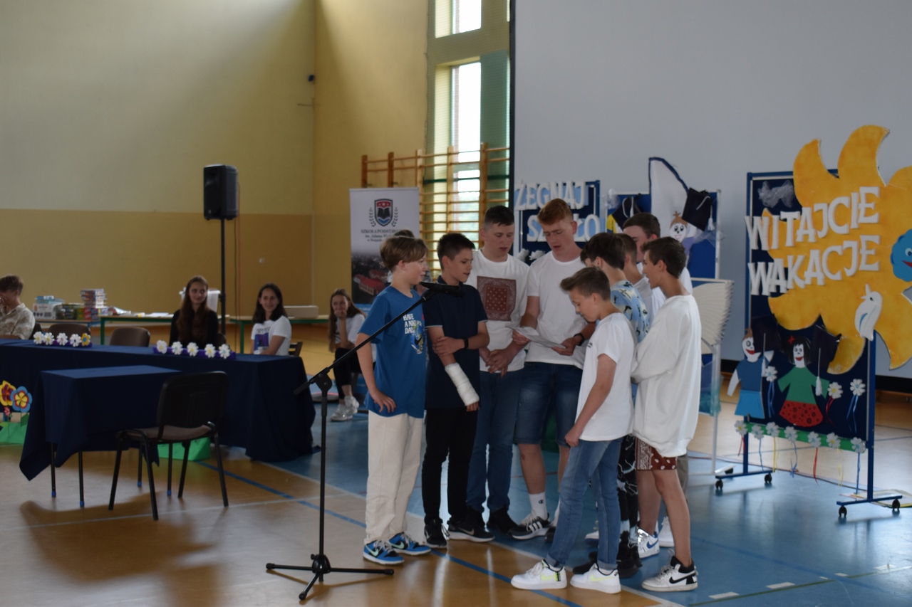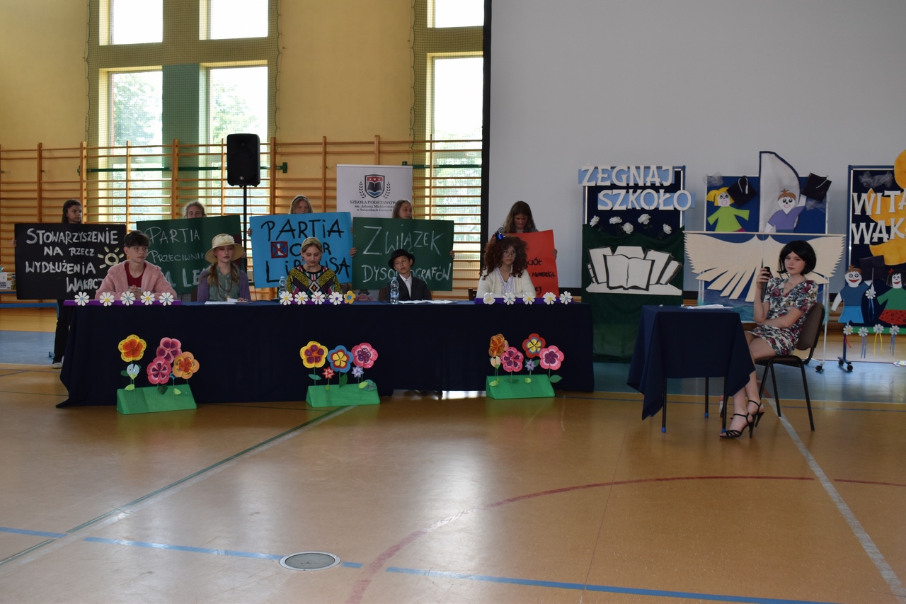 W dniu 23 czerwca 2022 roku w Szkole Podstawowej im. Adama Mickiewicza w Świątnikach Górnych, odbyło się uroczyste pożegnanie klas ósmych. Po części oficjalnej Pani Dyrektor Agnieszka Szlachetka wygłosiła okolicznościowe przemówienie i wraz z Wychowawcami wręczyła uczniom nagrody i wyróżnienia zdobyte w różnych konkursach  i zawodach, a także nagrody za działalność społeczną. Pożegnanie było okazją do podsumowań i refleksji dotyczących różnych obszarów życia i funkcjonowania szkoły oraz podziękowań skierowanych do uczniów, nauczycieli i rodziców. Uczniowie klas 7 oraz 8 zaprezentowali przygotowaną na tę okoliczność część artystyczną. Na zakończenie uroczystości uczniowie klas siódmych wręczyli swoim starszym kolegom i koleżankom niespodzianki – upominki.