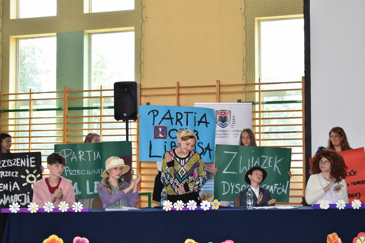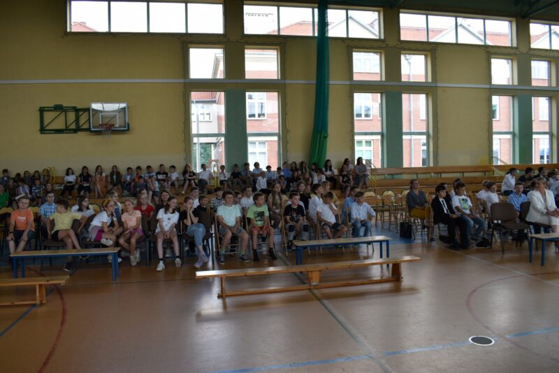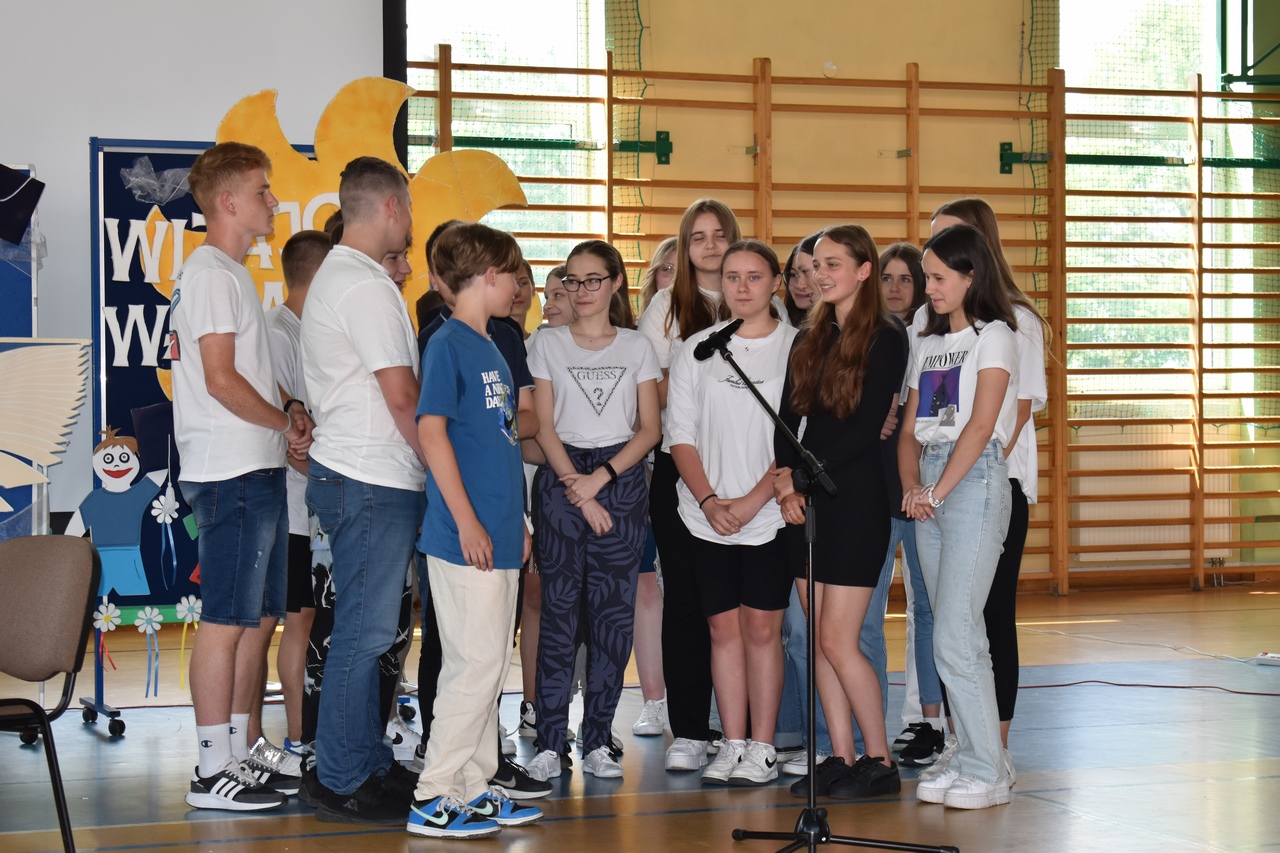 W tym dniu odbył się także apel, na którym Pani Dyrektor wręczyła uczniom klas 1-3 nagrody i wyróżnienia za udział w konkursach o zasięgi powiatowym ogólnopolskim, a także za udział w projektach i przedsięwzięciach.