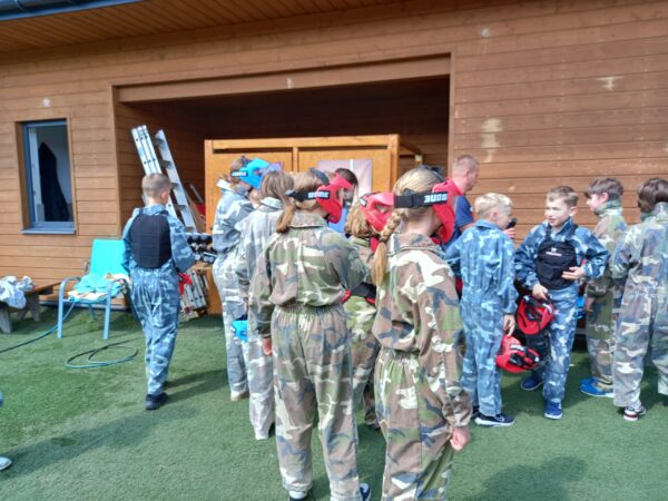W czwartek 5 czerwca 2025 roku klasa 5b wybrała się na długo wyczekiwany wyjazd na paintball. Już od rana uczniom towarzyszyły wielkie emocje. Pogoda dopisała, a tereny Areny Mocy w Sierakowie zapewniały świetne warunki do zabawy. Celem wycieczki była nie tylko integracja zespołu klasowego, ale również propagowanie zdrowej rywalizacji opartej na zasadzie fair play, promowanie i upowszechnianie sportu oraz aktywnego i bezpiecznego spędzania wolnego czasu.