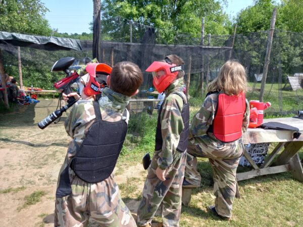 Na miejscu przedstawiono uczniom regulamin i zasady bezpiecznej gry w paintball. Ubrani w kombinezony, maski ochronne, wyposażeni w markery i kulki wypełnione farbą uczniowie byli gotowi do walki . Piątoklasiści zostali podzieleni na 2 zespoły, które na polu paintballowym walczyły między sobą. Jak się okazało gra dostarczyła ogromnych emocji i niezapomnianych wrażeń. Po takim wysiłku pieczone na ognisku kiełbaski smakowały wybornie. Sporym wyzwaniem okazała się też gra terenowa. Dzięki zaangażowaniu całego zespołu udało się jednak szybko uporać z zadaniami.