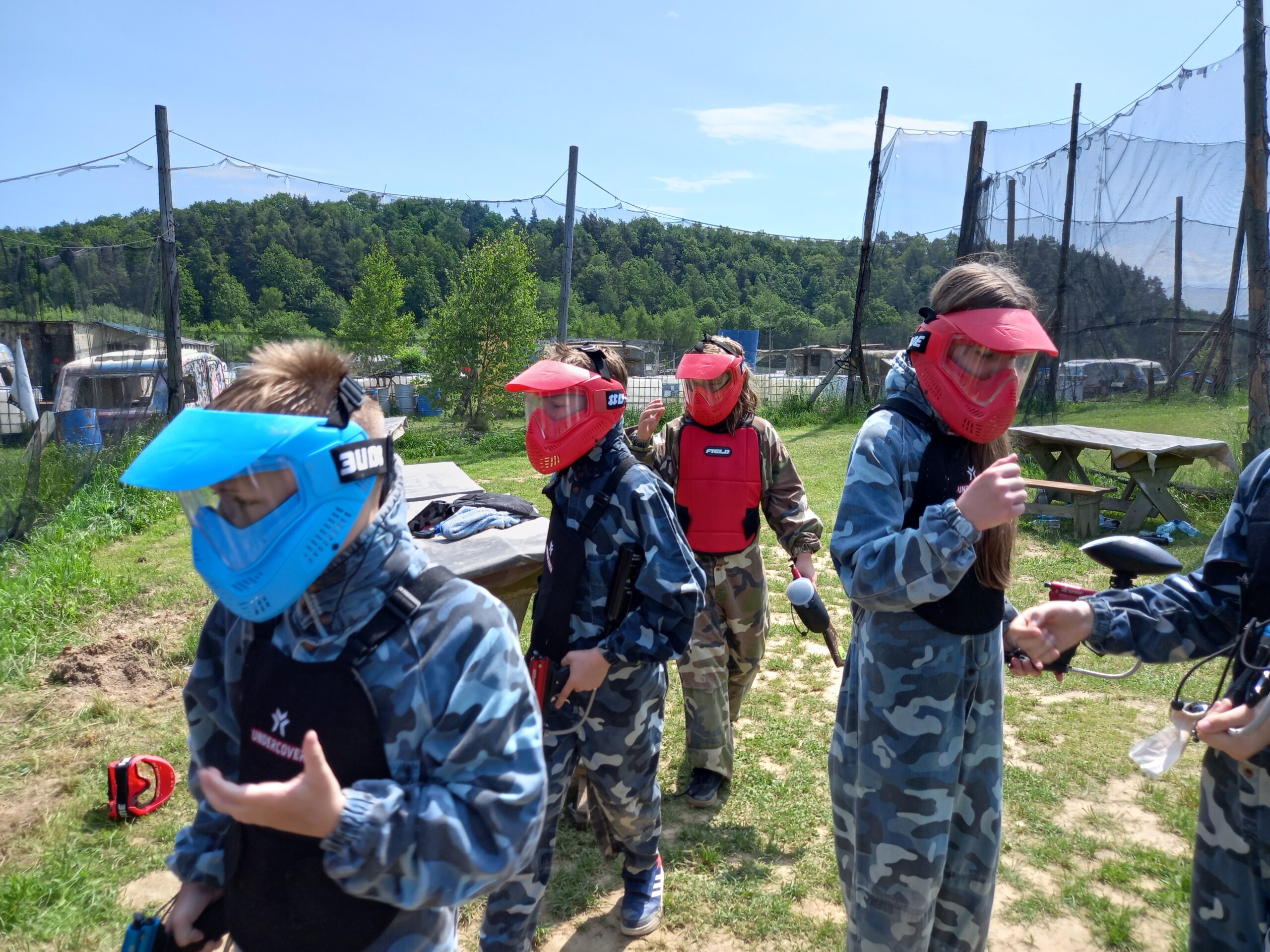 W czwartek 5 czerwca 2025 roku klasa 5b wybrała się na długo wyczekiwany wyjazd na paintball. Już od rana uczniom towarzyszyły wielkie emocje. Pogoda dopisała, a tereny Areny Mocy w Sierakowie zapewniały świetne warunki do zabawy. Celem wycieczki była nie tylko integracja zespołu klasowego, ale również propagowanie zdrowej rywalizacji opartej na zasadzie fair play, promowanie i upowszechnianie sportu oraz aktywnego i bezpiecznego spędzania wolnego czasu.
