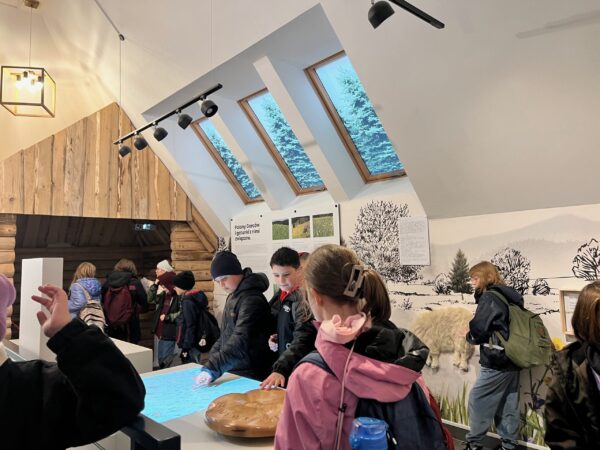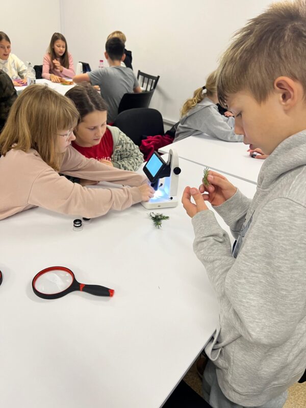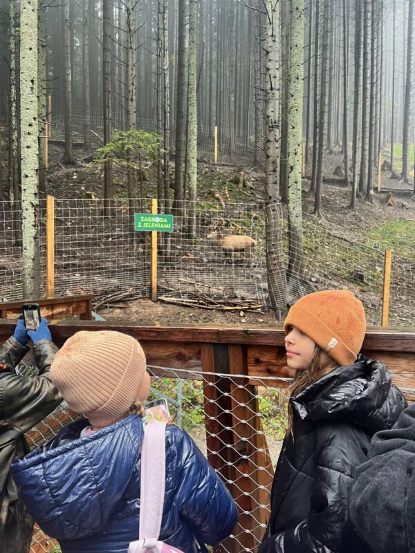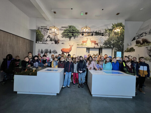 0 października uczniowie klas 4 udali się na wycieczkę do Centrum Edukacyjno-Przyrodniczego Brama w Gorce w Waksmundzie. Uczniowie mogli przejść się edukacyjną ścieżką w koronach drzew i dowiedzieć się wielu ciekawych rzeczy dotyczących lokalnej flory i fauny. Uczestnicy wycieczki zobaczyli także piękne jelenie. Choć pogoda nas nie rozpieszczała, warto było przejść ten ciekawy szlak. Uczniowie zobaczyli także piękną wystawę i wzięli udział w przyrodniczych warsztatach, gdzie przy pomocy lupy i mikroskopu przyglądali się szyszkom oraz igłom świerku i sosny.