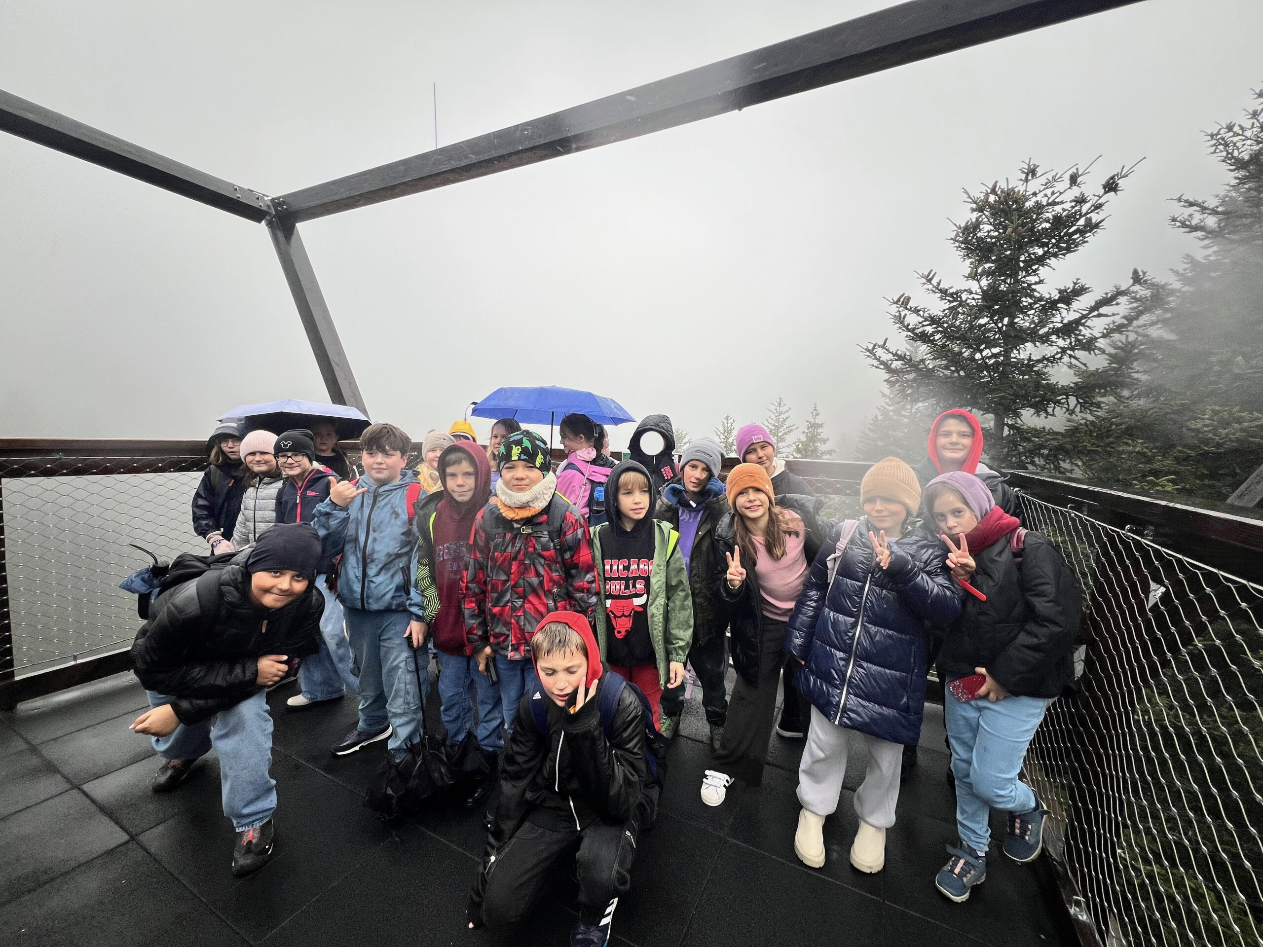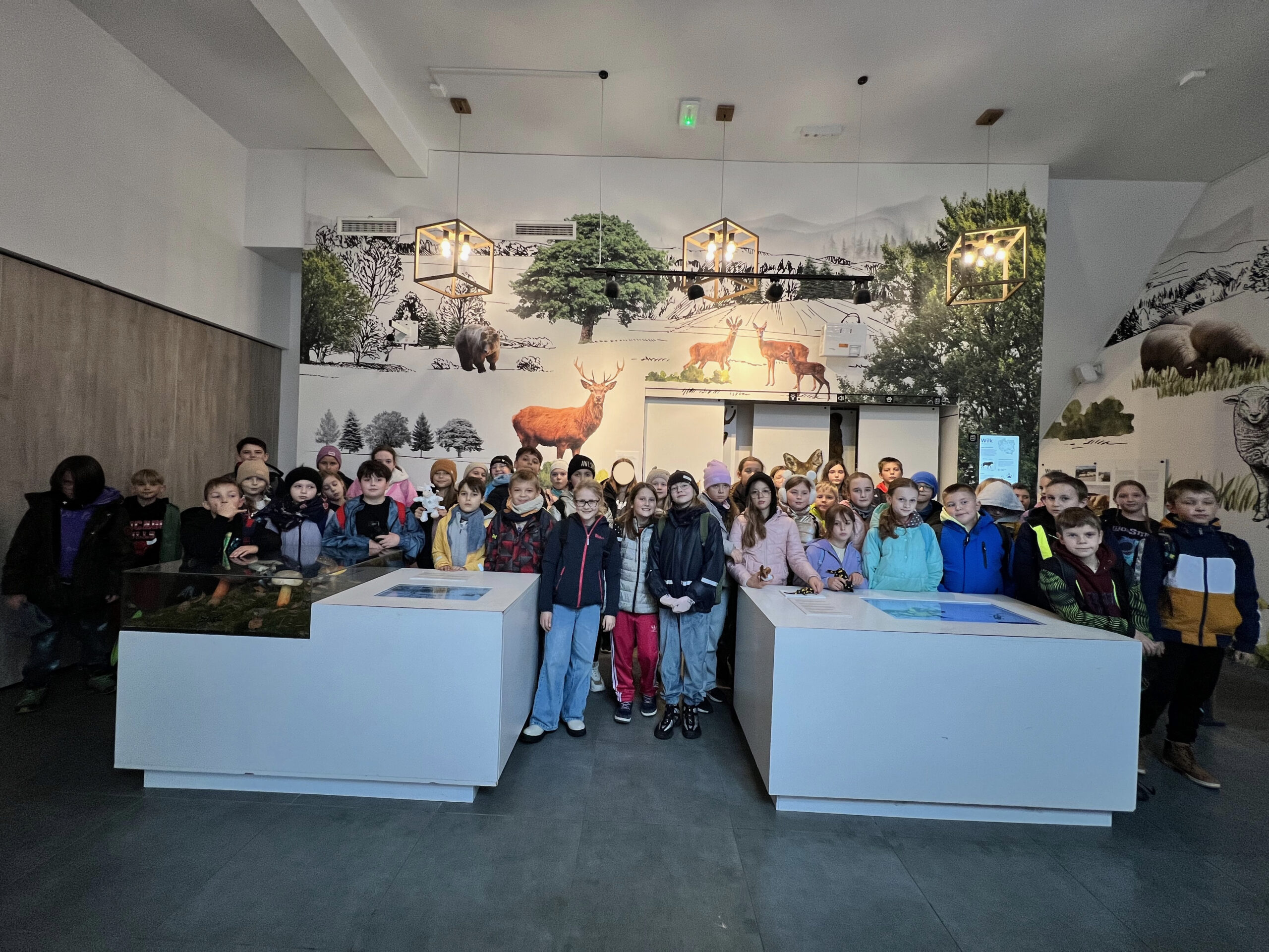 0 października uczniowie klas 4 udali się na wycieczkę do Centrum Edukacyjno-Przyrodniczego Brama w Gorce w Waksmundzie. Uczniowie mogli przejść się edukacyjną ścieżką w koronach drzew i dowiedzieć się wielu ciekawych rzeczy dotyczących lokalnej flory i fauny. Uczestnicy wycieczki zobaczyli także piękne jelenie. Choć pogoda nas nie rozpieszczała, warto było przejść ten ciekawy szlak. Uczniowie zobaczyli także piękną wystawę i wzięli udział w przyrodniczych warsztatach, gdzie przy pomocy lupy i mikroskopu przyglądali się szyszkom oraz igłom świerku i sosny.