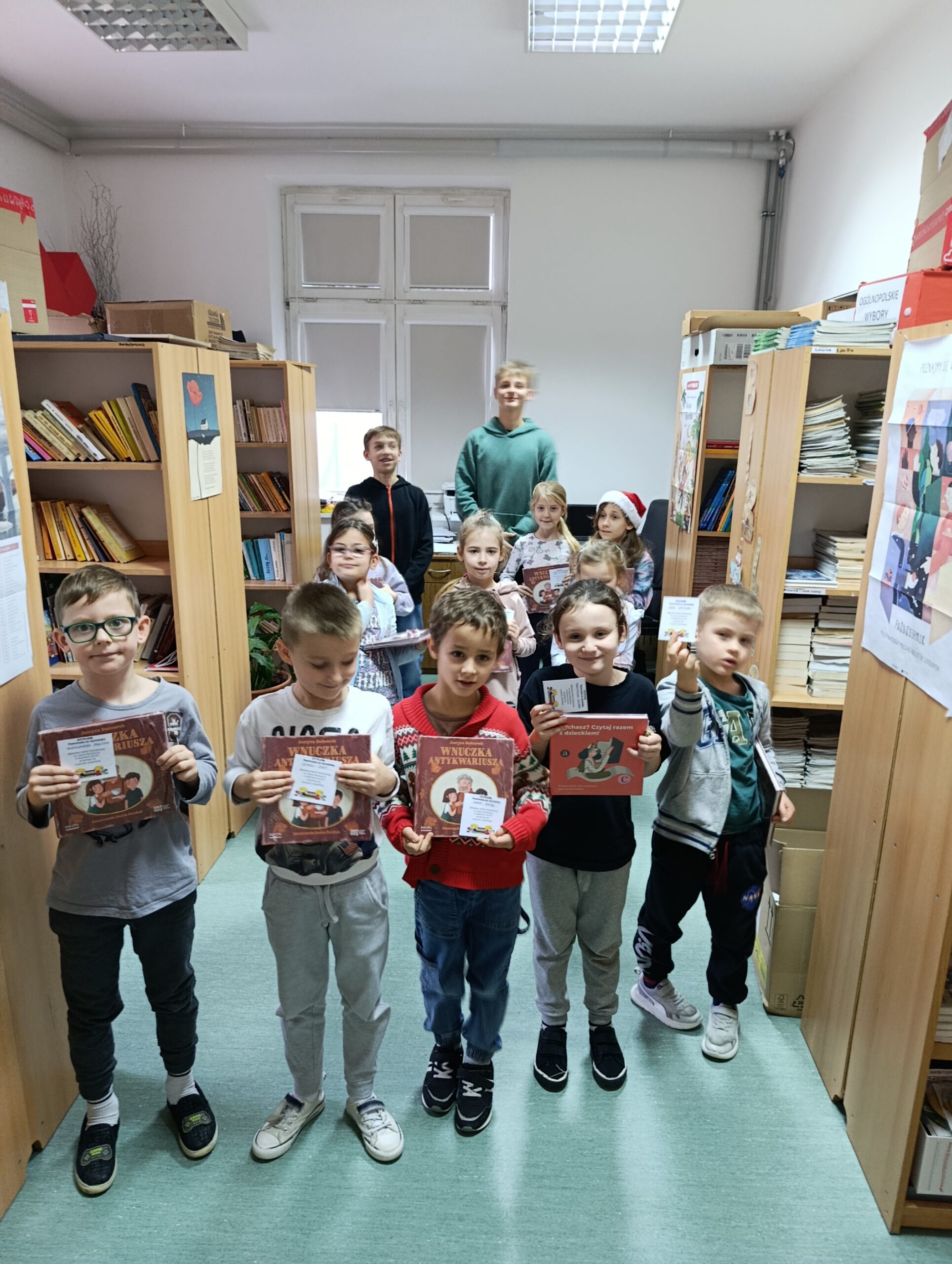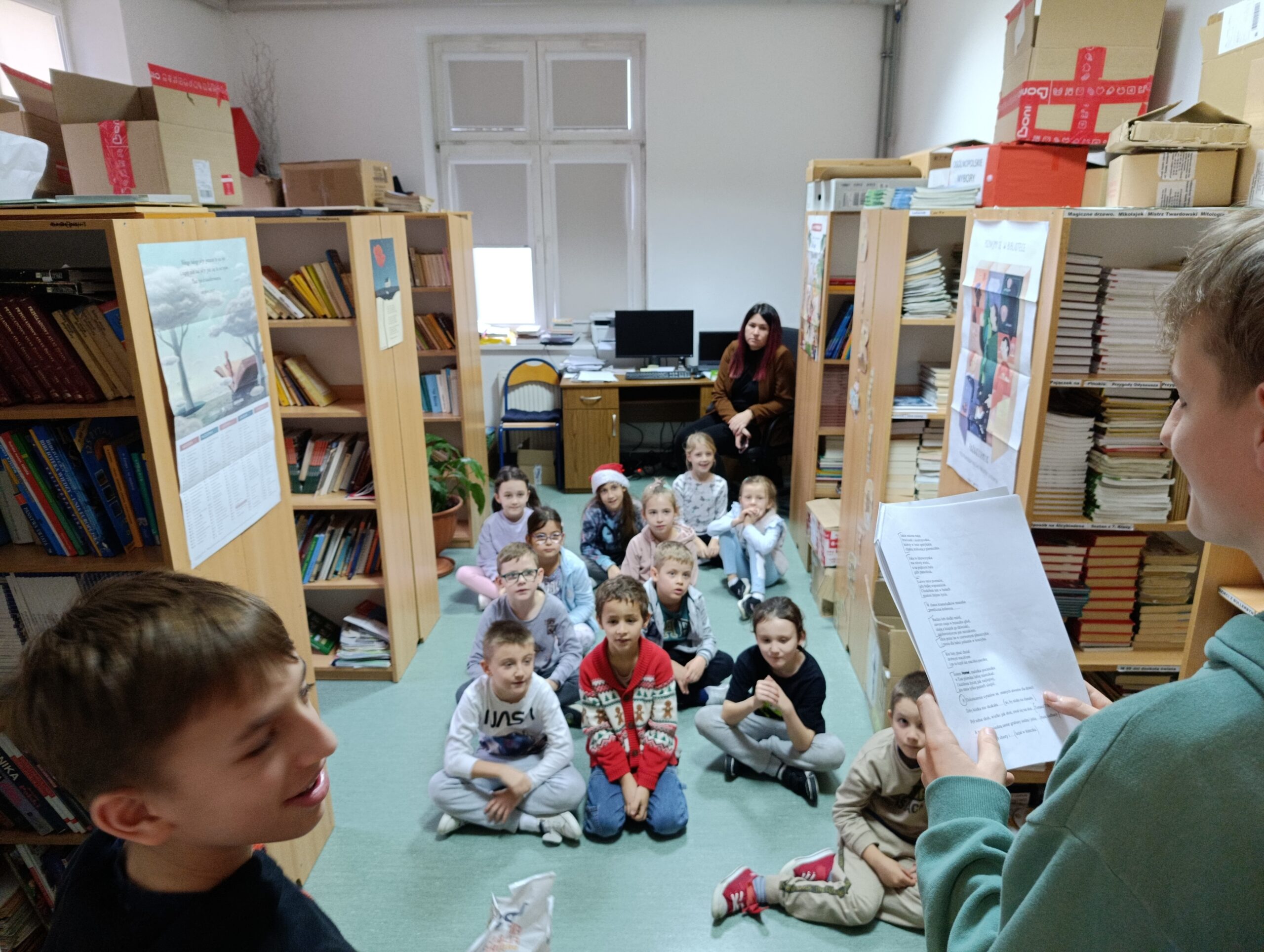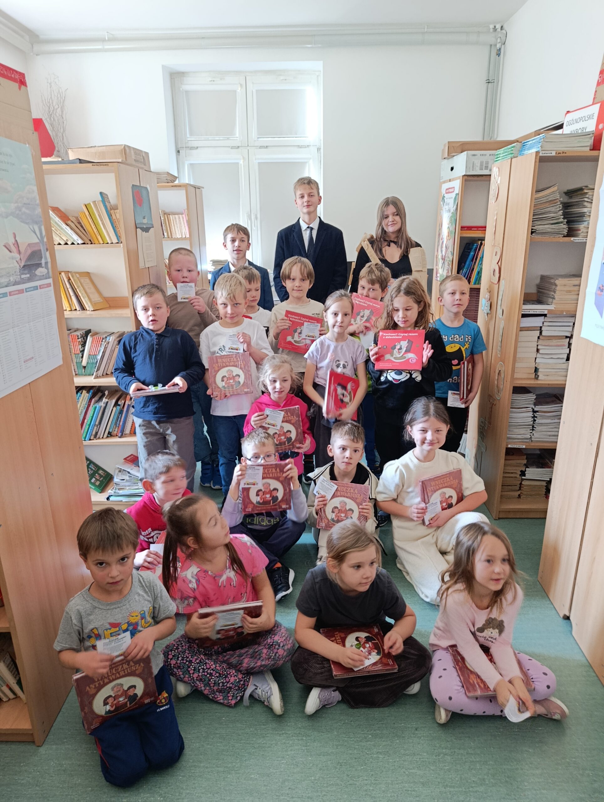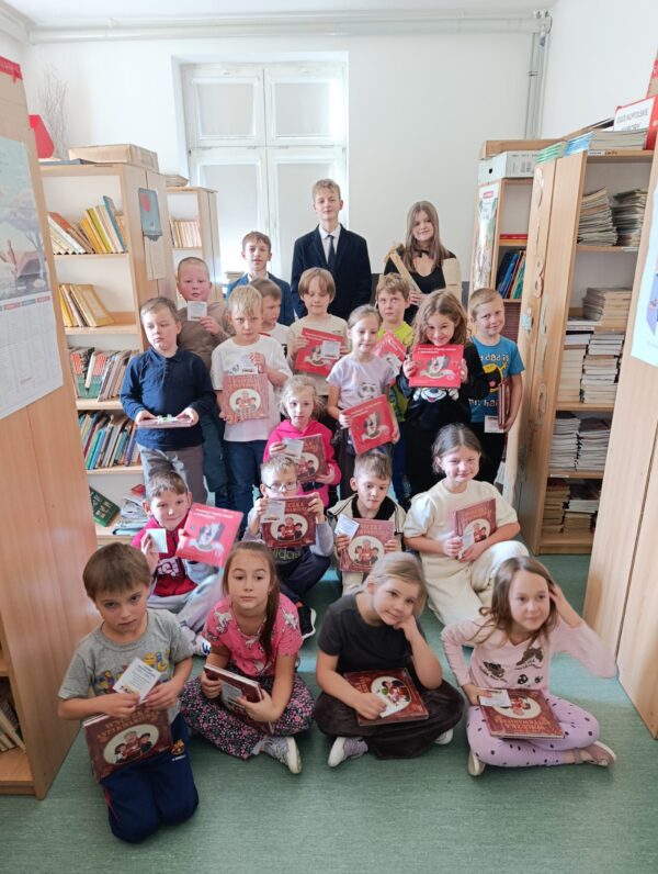Zgodnie z naszą utrwaloną już tradycją także w tym roku szkolnym uczniowie klas pierwszych wraz ze swoimi wychowawczyniami gościli w naszej bibliotece szkolnej na uroczystym pasowaniu na Rycerzy Książek. Uczniowie klasy VIII A przygotowali dla nich krótki program artystyczny, podczas którego w rymowany sposób młodzi czytelnicy otrzymali informacje, jak należy zachowywać się w bibliotece i jak dbać o książki oraz rozwiązywali książkowe zagadki. Na koniec naszego spotkania każdy świeżo pasowany rycerz otrzymał pamiątkowy dyplom i książkowy upominek oraz mógł samodzielnie wypożyczyć pierwszą książkę.