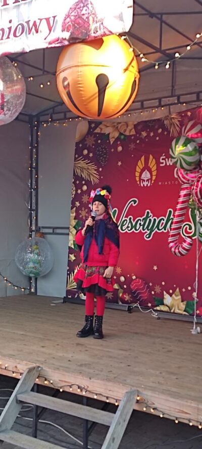 Podczas Świątnickiego Jarmarku w dniu 14 grudnia 2025 roku uczennice naszej szkoły zaśpiewały z dużym zaangażowaniem kolędy .