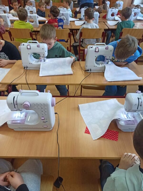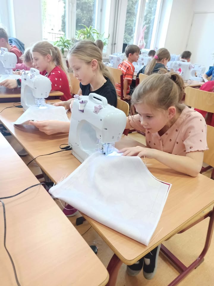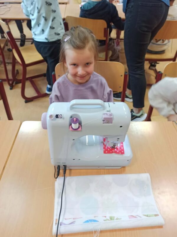 Warsztaty sprawiły dzieciom wiele radości – uczestnicy byli uśmiechnięci, zadowoleni i, co najważniejsze, bardzo zainteresowani nową umiejętnością. Kto wie, u kogo z nich już wkrótce w domu pojawi się własna maszyna do szycia?