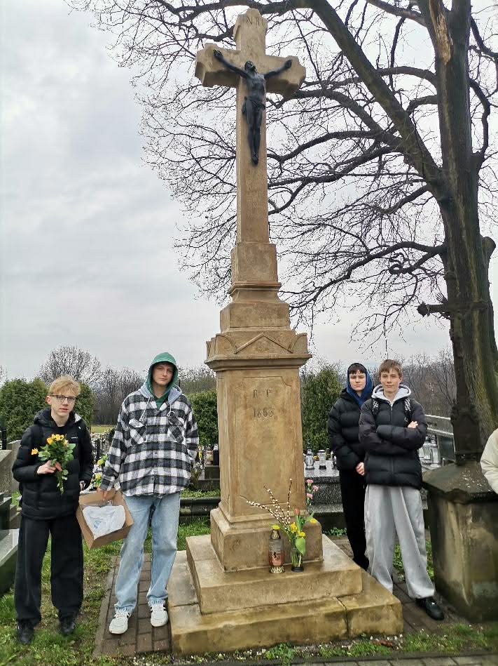 31.03. 26 r. wolontariusze z naszego Szkolnego Koła Wolontariatu, w ramach AKCJI KWIAT PAMIĘCI, udali się na cmentarz parafialny, by złożyć kwiaty i zapalić znicze na opuszczonych nagrobkach i grobach osób zasłużonych dla Świątnik Górnych.